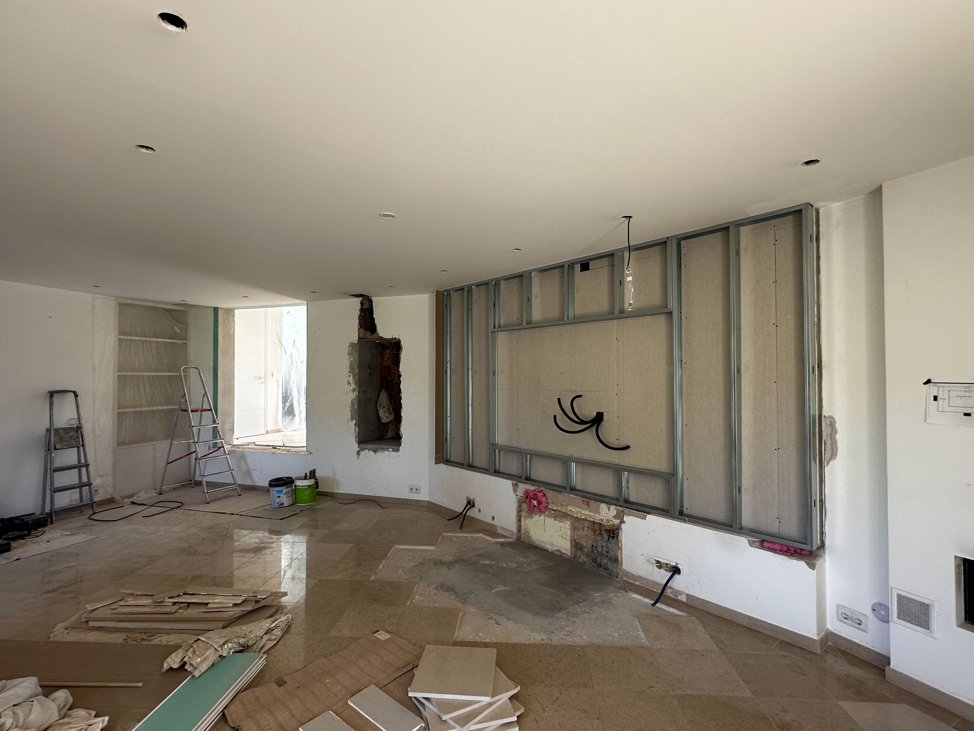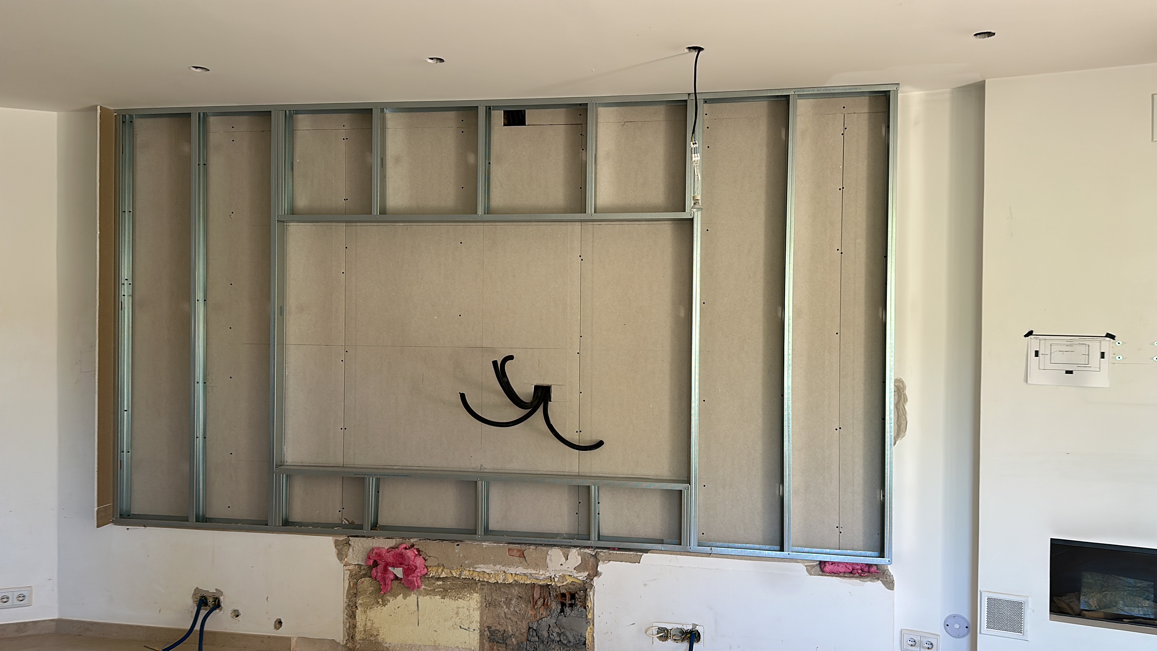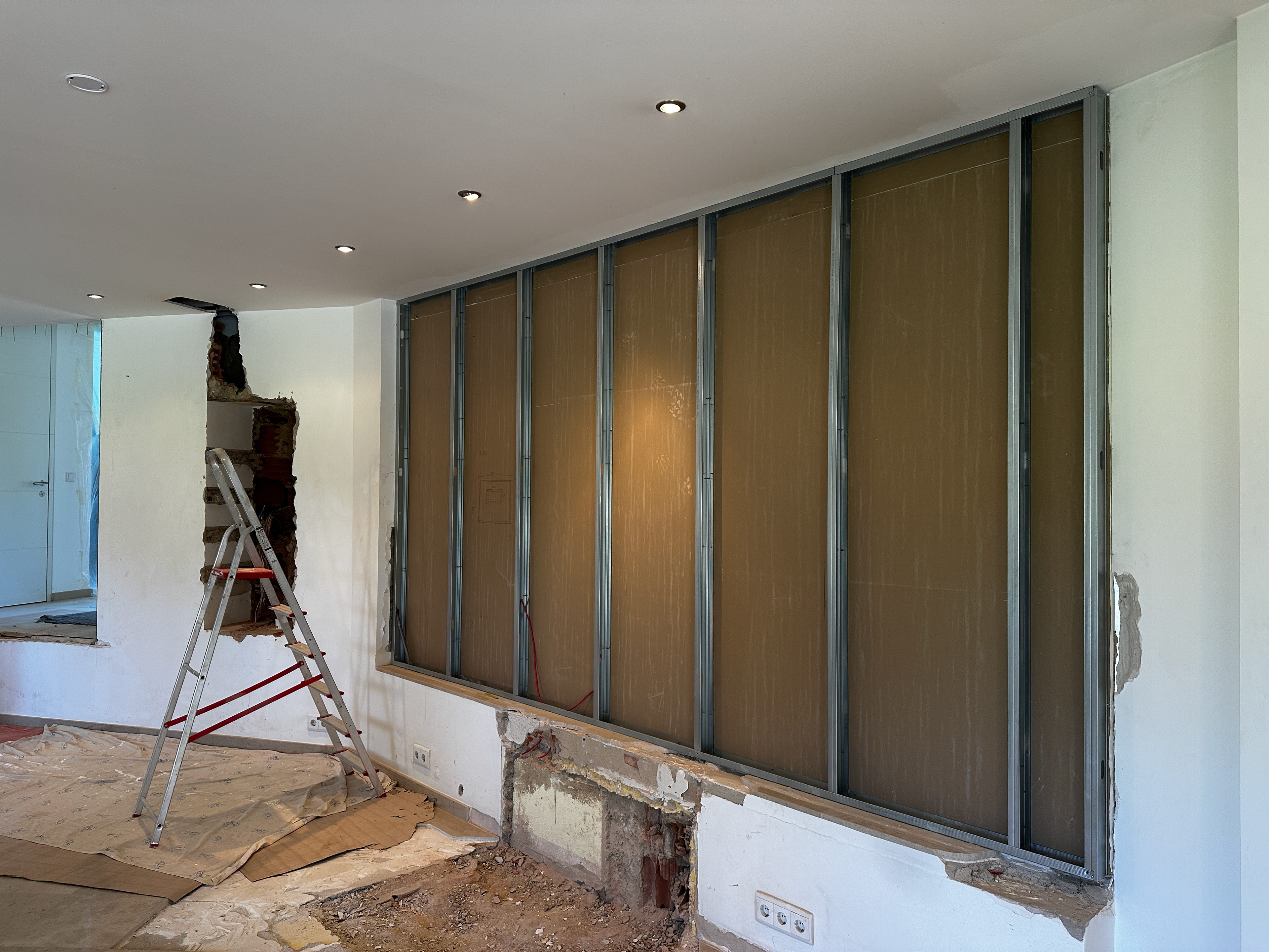 We were commissioned to construct a custom cinema wall and create a new doorway from the corridor. Additionally, the client requested the closure of the open space between the kitchen and lounge to enhance privacy and create a more immersive viewing experience.
