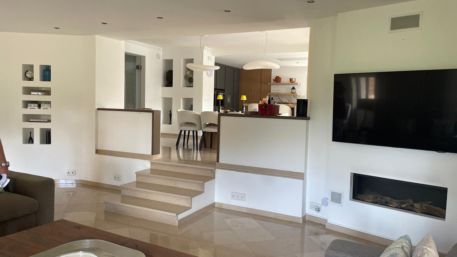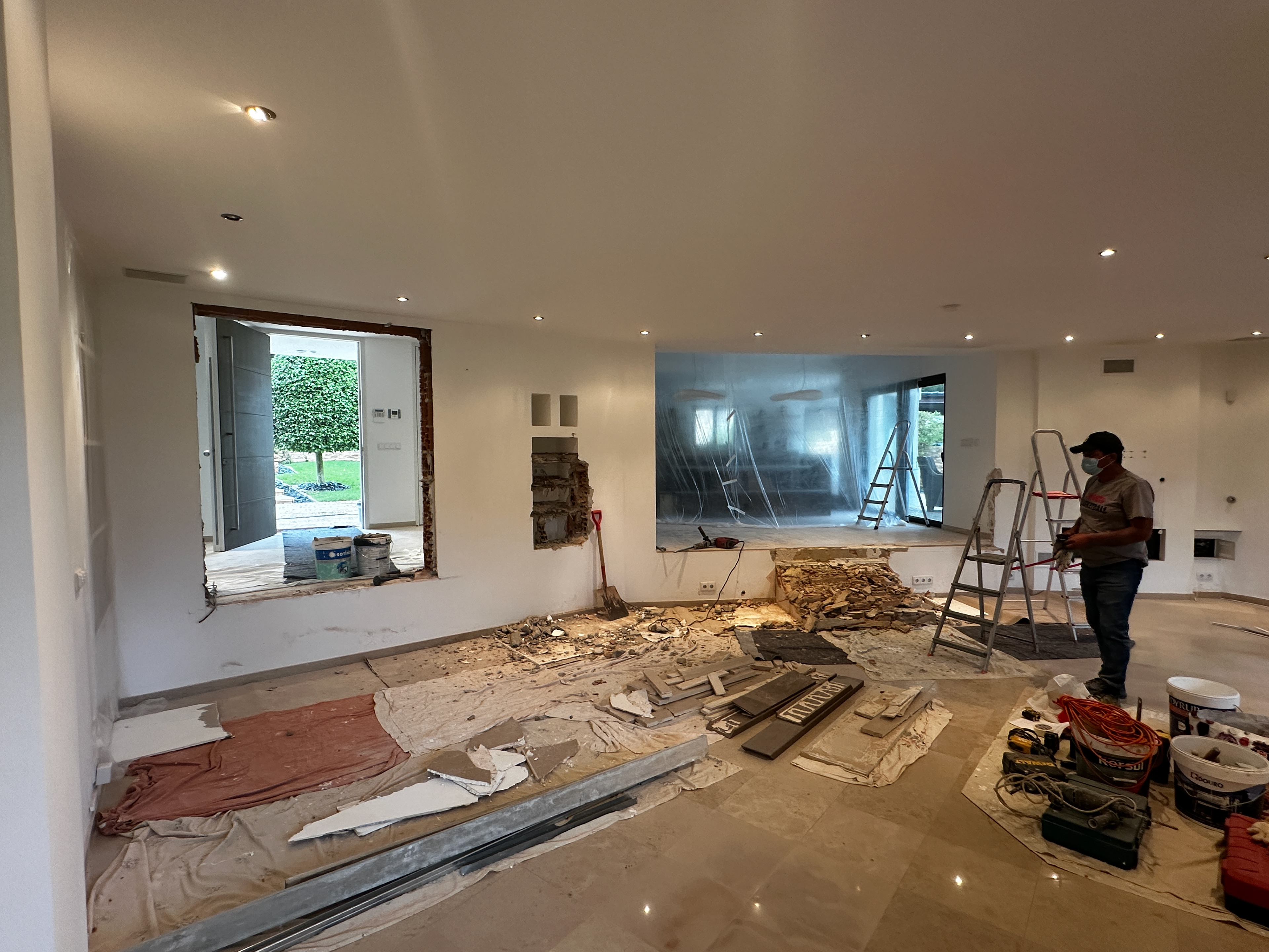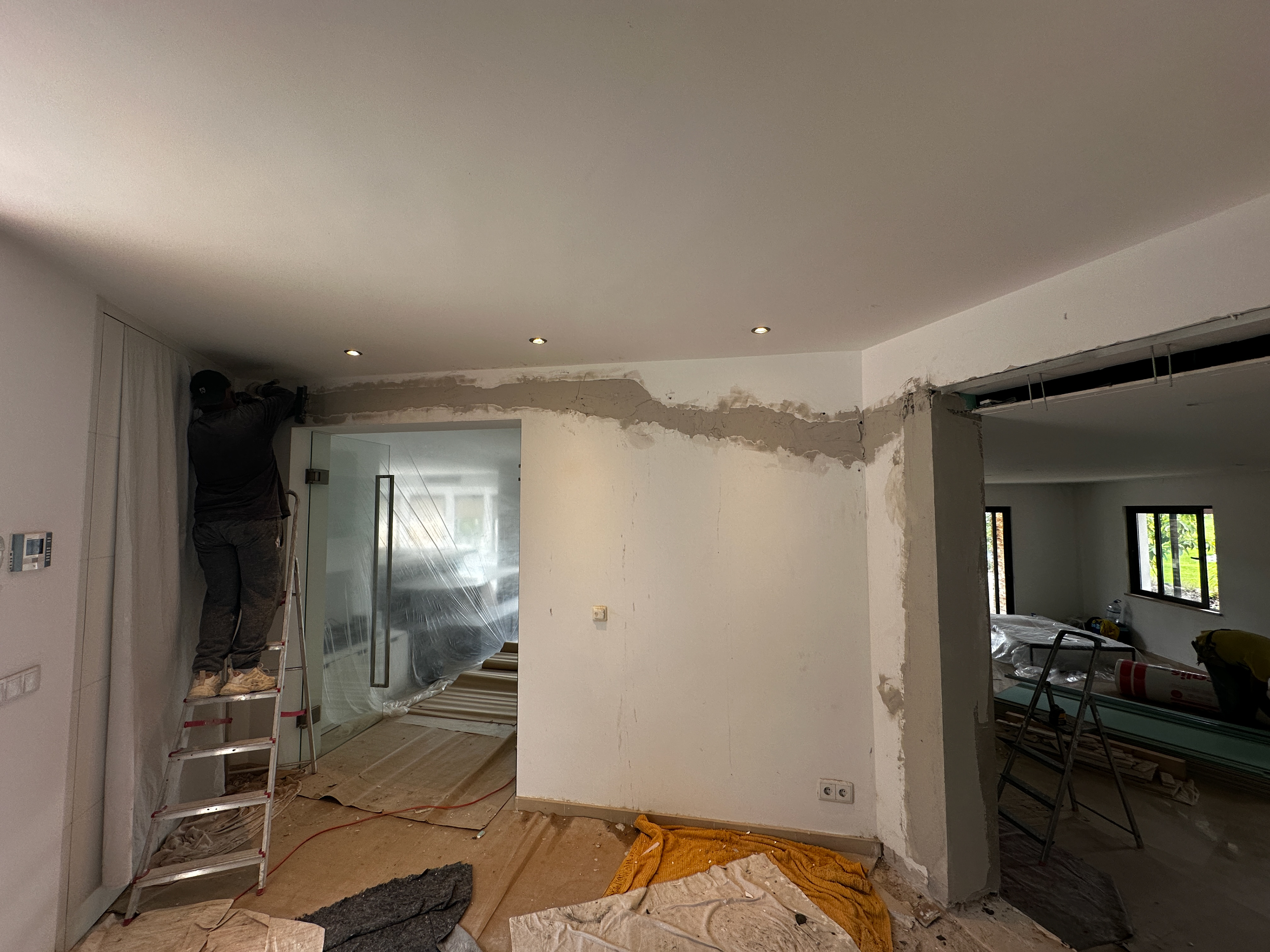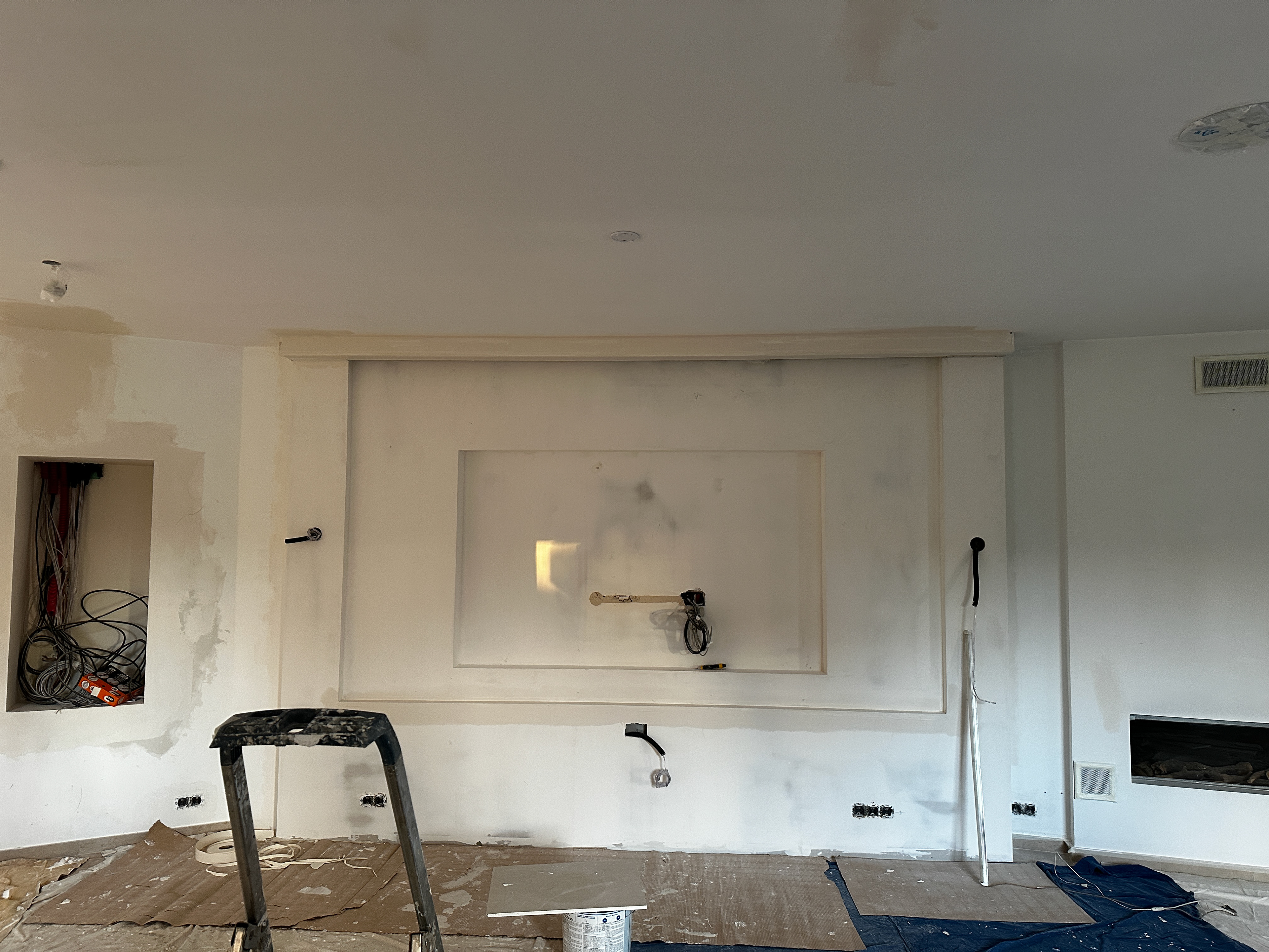 We were commissioned to construct a custom cinema wall and create a new doorway from the corridor. Additionally, the client requested the closure of the open space between the kitchen and lounge to enhance privacy and create a more immersive viewing experience.