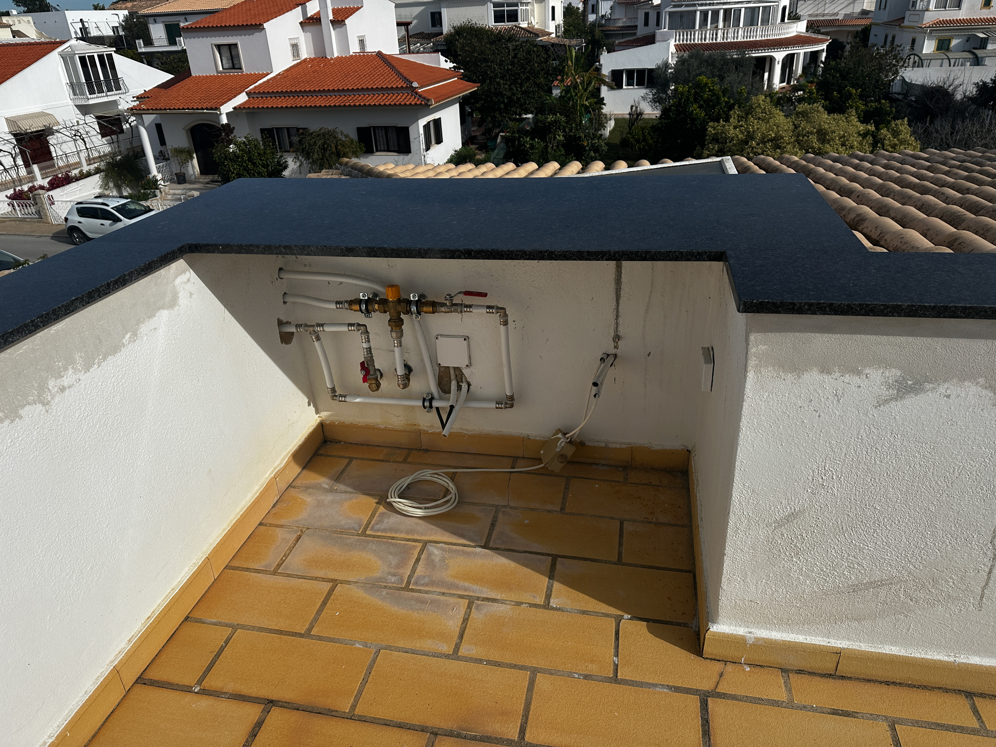 For the roof renovation, the client wanted to replace the aging marble stones with sleek, durable granite. Additionally, he wished to relocate his old solar tank from the balcony to the roof, freeing up space to fully enjoy his outdoor area. Given the tank’s age and inefficiency, we upgraded it with a new, high-performance model.